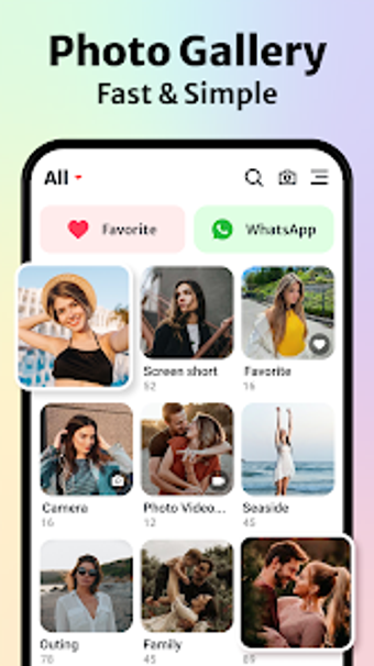 De app biedt ook unieke functies zoals het maken van statusupdates en het instellen van afbeeldingen als achtergrond. Gebruikers kunnen eenvoudig de details van hun foto's en video's bekijken, wat bijdraagt aan een georganiseerde ervaring. Gallery - Photo Album is ideaal voor diegenen die op zoek zijn naar een alles-in-één oplossing voor hun fotografiebehoeften op mobiele apparaten.